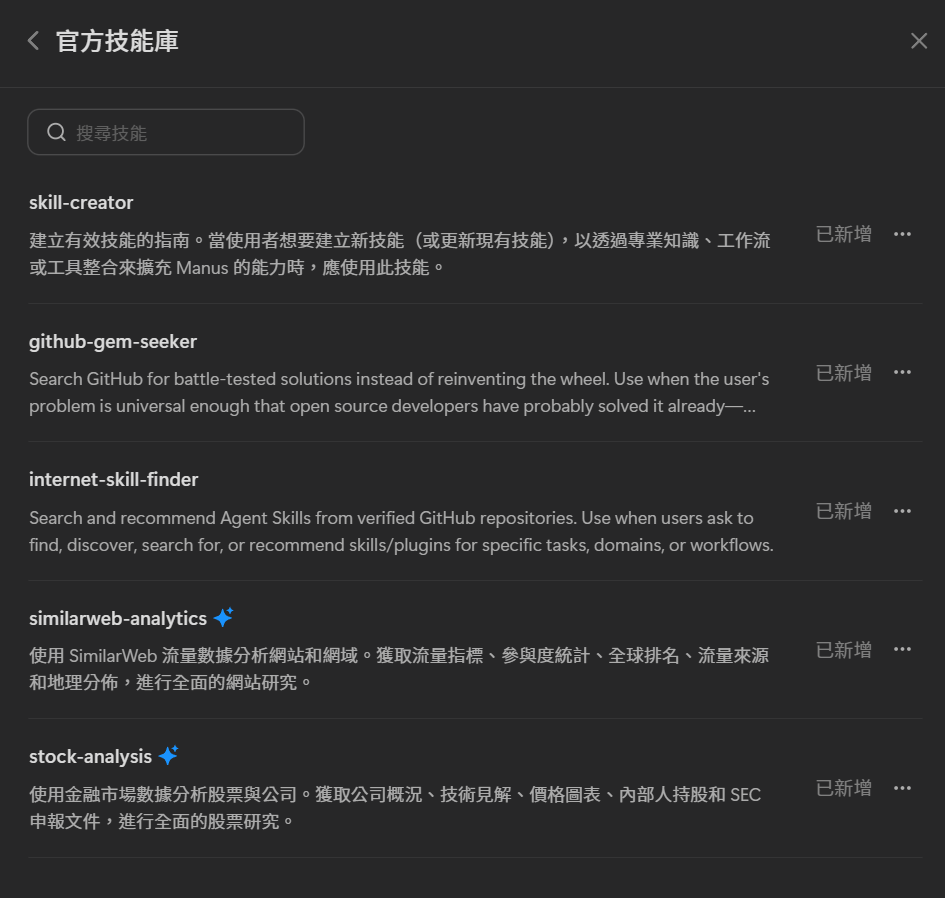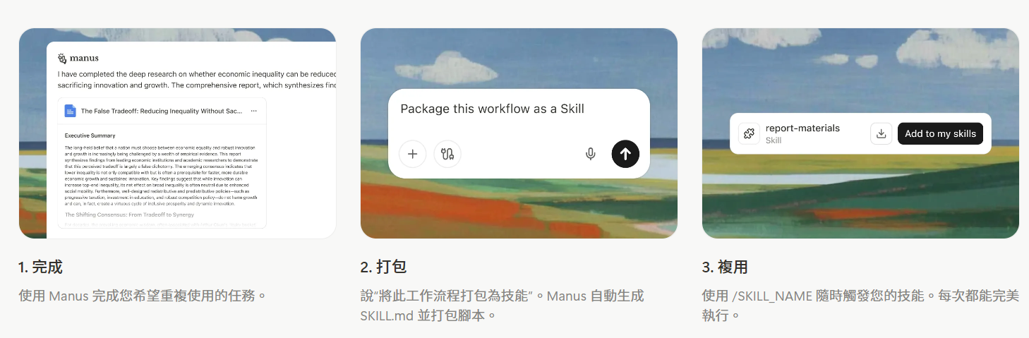 - Manus 推出新功能 Skills :讓 AI 幫你打造可重複使用、可堆疊、可共享的技能包