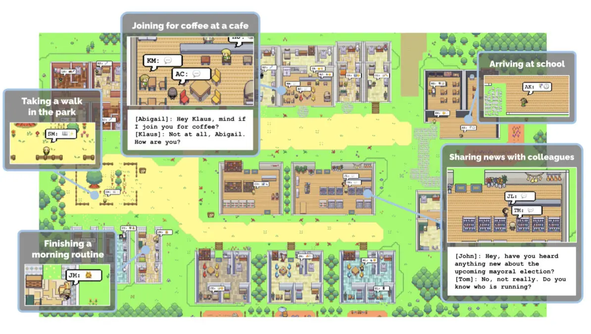 然後開放這些 agent 依照自己的「角色設定」去生活、互動、建立關係。這些 agent 不只是對話,它們會: