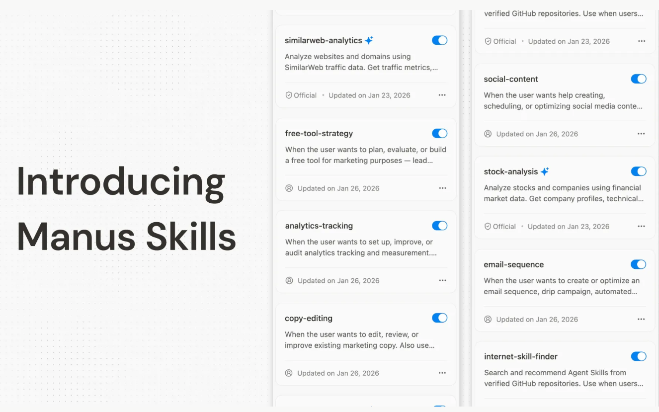 Manus 推出新功能 Skills :讓 AI 幫你打造可重複使用、可堆疊、可共享的技能包