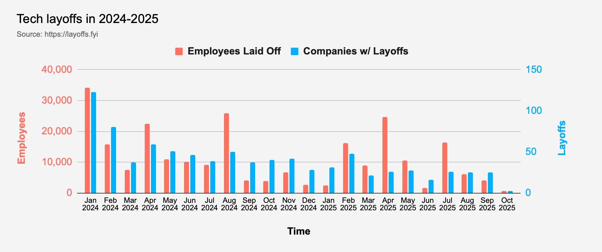 根據美國官方統計,2013 至 2022 年間,電腦科學學位的畢業人數翻了一倍以上。同時,Google、Meta、Amazon 等科技巨頭近年接連裁員,讓數以萬計的工程師流入市場。