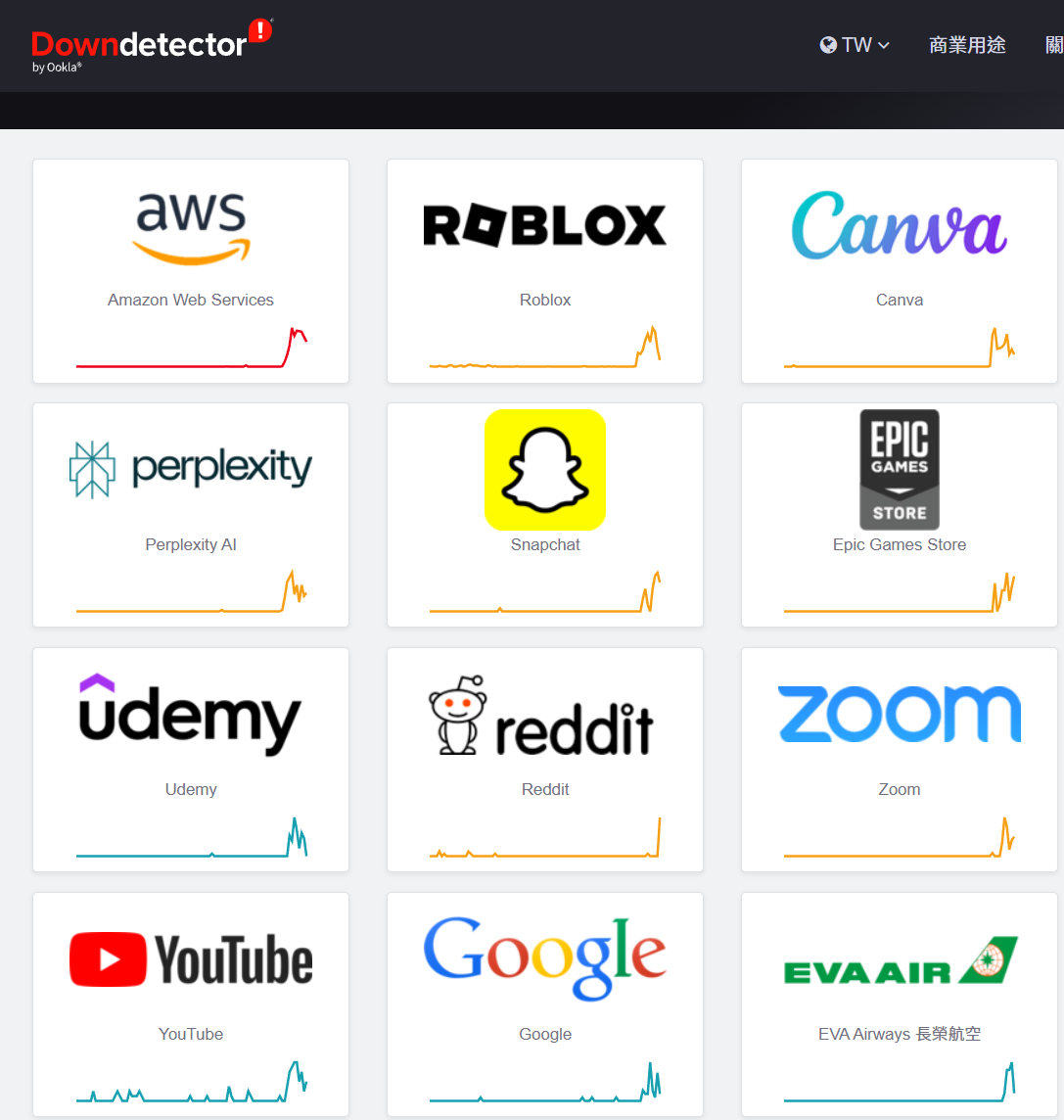 - AWS 大當機:Perplexity、Canva、Reddit 全部斷線
