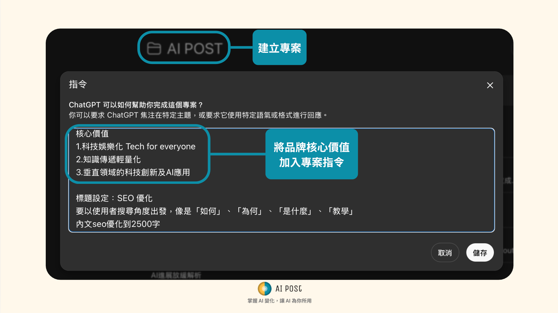 可以在 ChatGPT 建立品牌專案: