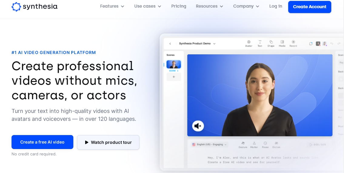 Synthesia視頻創作平台讓您可以將PowerPoints和PDF文檔轉換成視頻。可以創建頭像,也可以從100個逼真的頭像、130種語言和55種視頻模板中進行選擇,讓您創作出獨特的視頻內容。