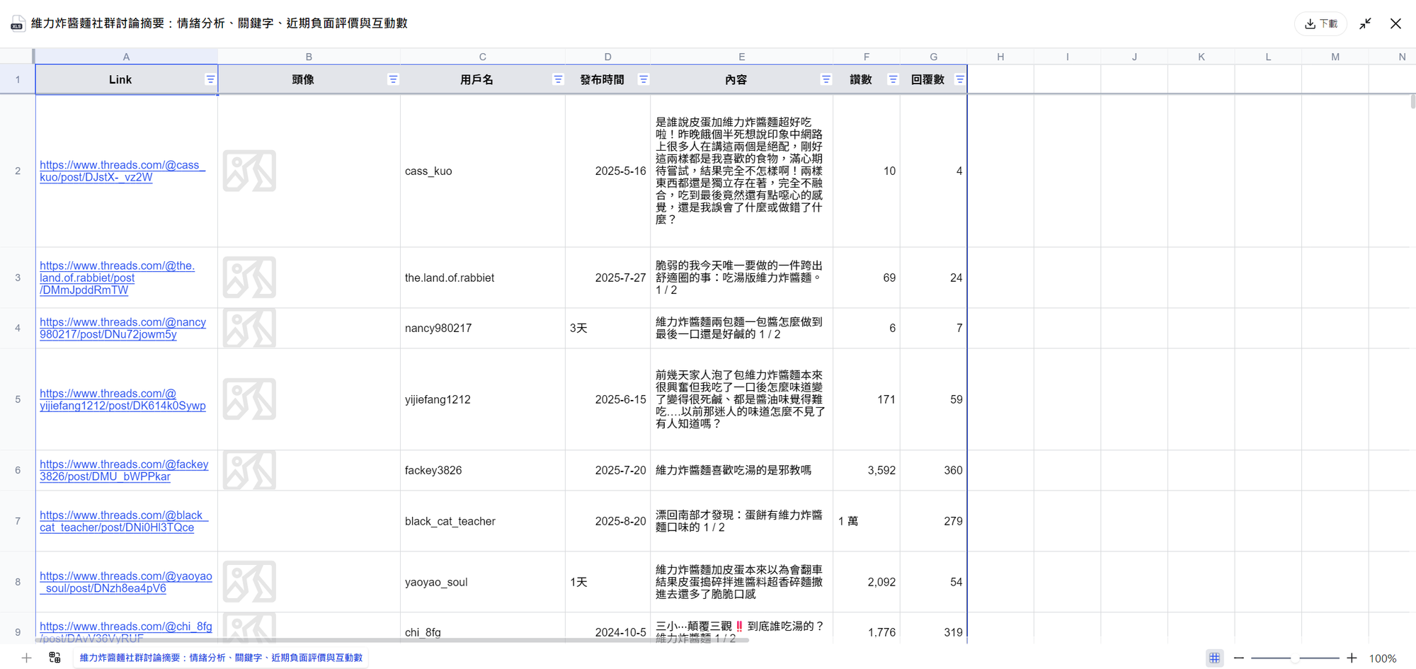 案例一|找出 Threads 上對某品牌/網紅的真實評價