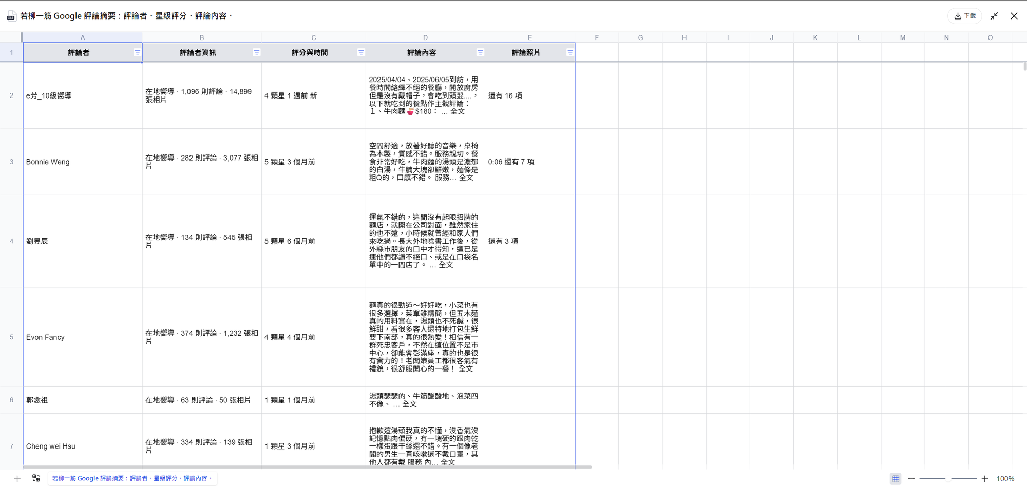 傳統的爬蟲其實很難做到這一點,因為 Google Map 的評論內頁有登入狀態與動態載入限制,爬蟲常常卡住或抓不到完整內容。Capalyze 的特點,就是能跨過這個門檻,直接幫你把評論「拉乾淨」,同時轉成結構化的欄位。