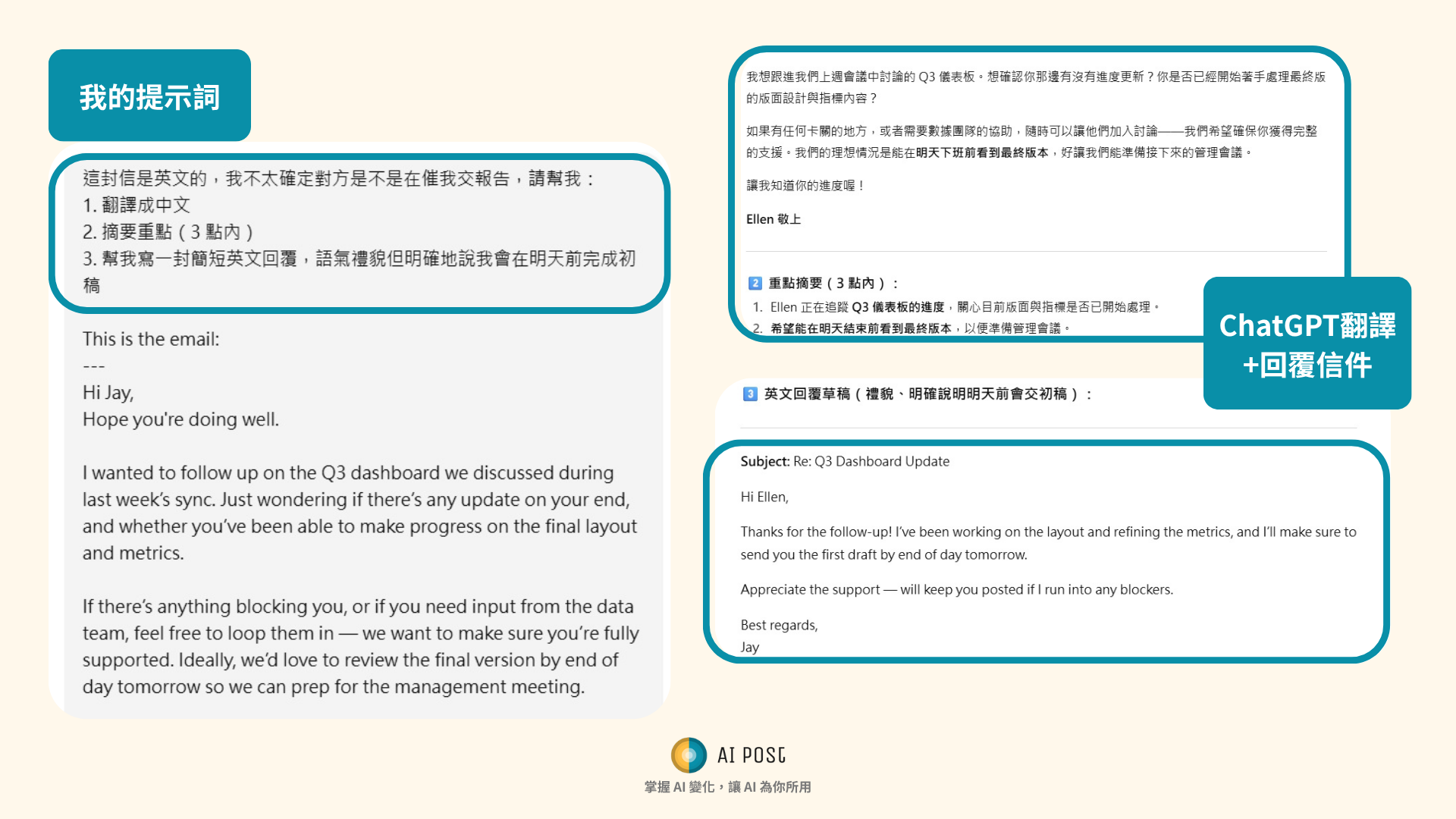 ✅ 幫你翻信件、寫回覆、整理簡報草稿
