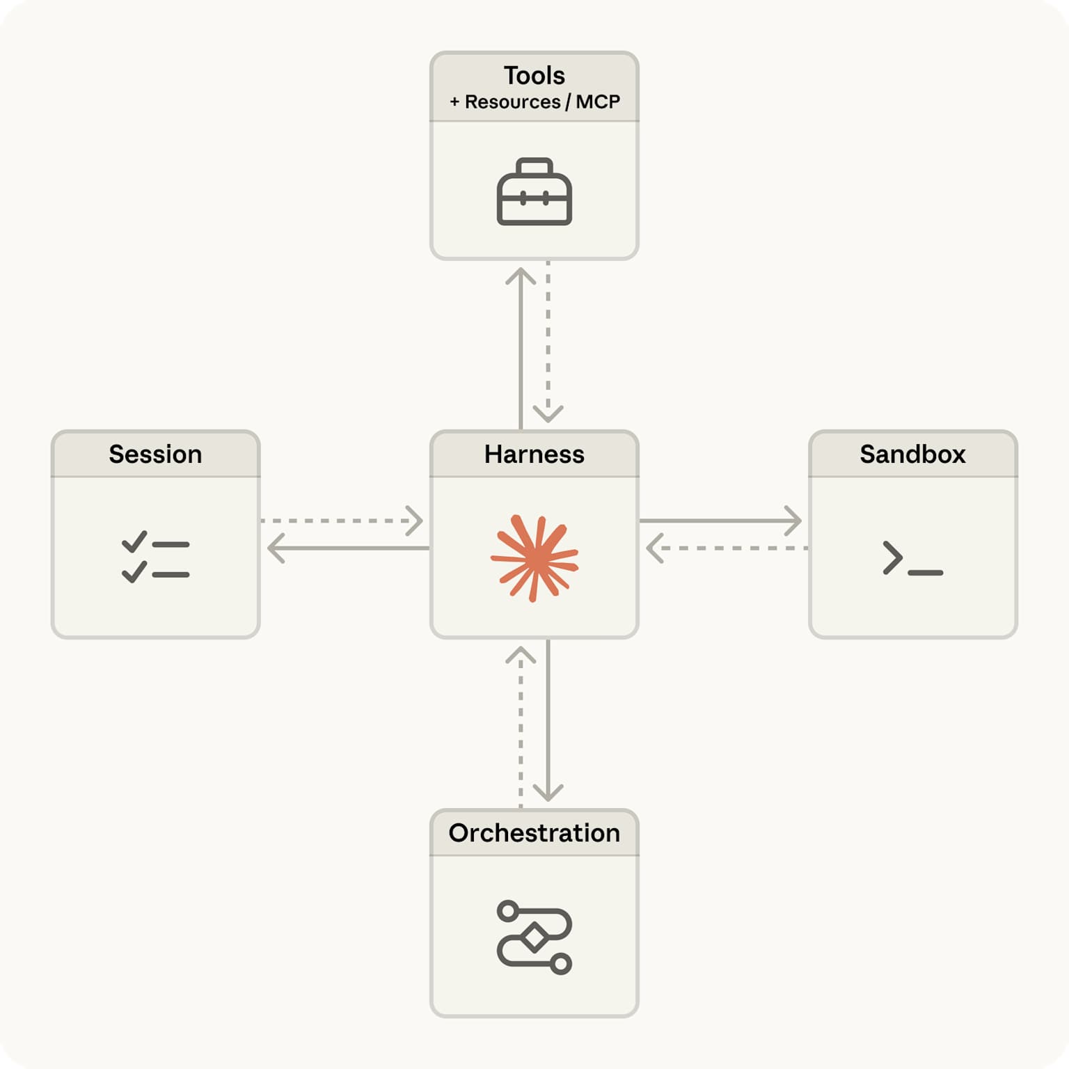 這四個元件統一由 Harness(框架核心) 整合,開發者透過 API 宣告式地定義代理行為,其餘執行細節全部由 Anthropic 托管。[2]