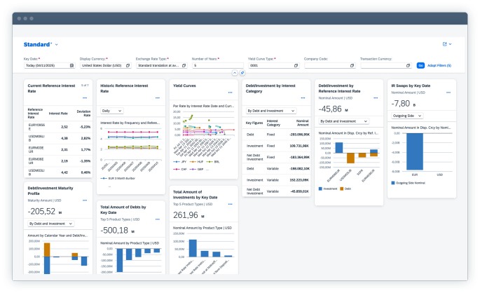 Treasury 模組可連接全球銀行帳戶 API,整合子公司資金流與即時匯率。AI 會根據預測現金流缺口,自動建議「在哪裡、何時、以什麼價格換匯」,有效減少資金閒置與錯過最佳時機的風險。