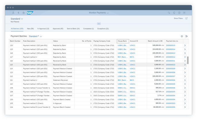 SAP Treasury 的 Risk Analyzer 模組能整合即時市場報價(例如 Bloomberg 或 Reuters)、公司曝險水位,自動推薦最合適的對沖工具(Forward、Option、Swap),並呈現不同策略下的損益範圍、VaR 指標與資金流變化。當設定條件被觸發(如「美元曝險超過 5,000 萬」),系統也會即時推送建議,甚至可自動產出對應會計分錄。