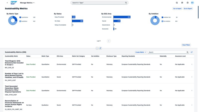 SAP Sustainability Control Tower 可透過標準 API 串接內外部系統,包含 ERP、感測器平台、供應商回報表單等,並根據各國主流揭露標準(如 IFRS、GRI、TCFD)自動對應欄位。