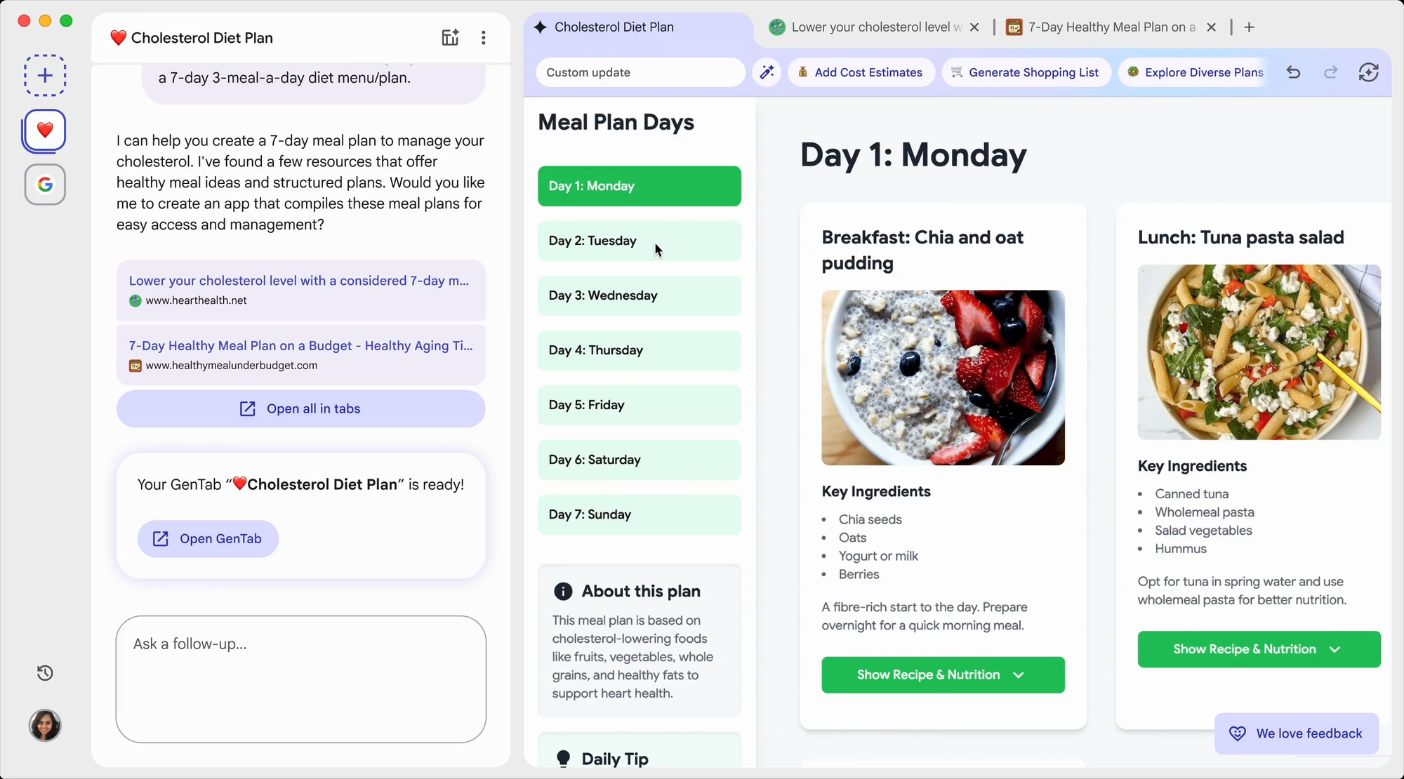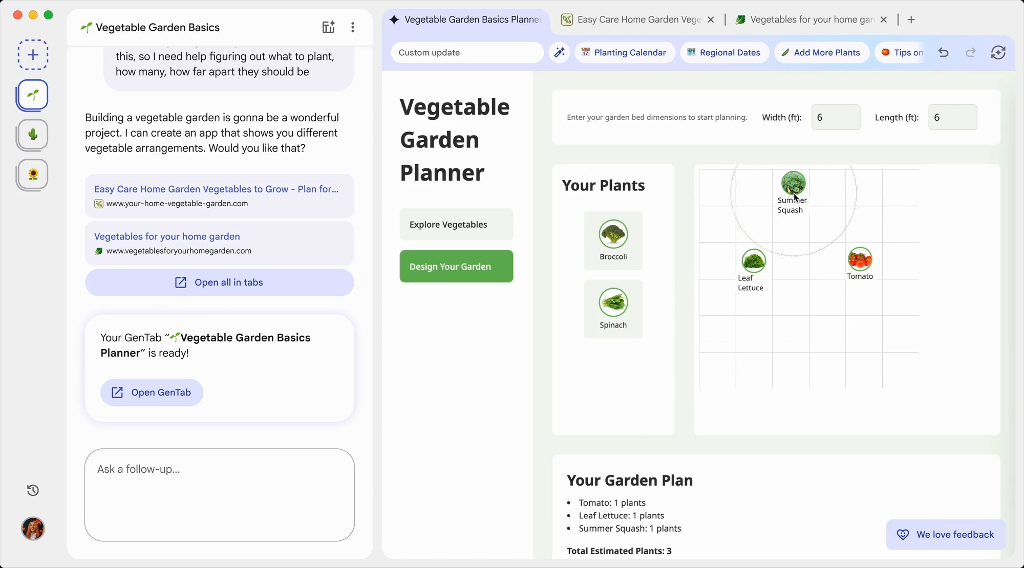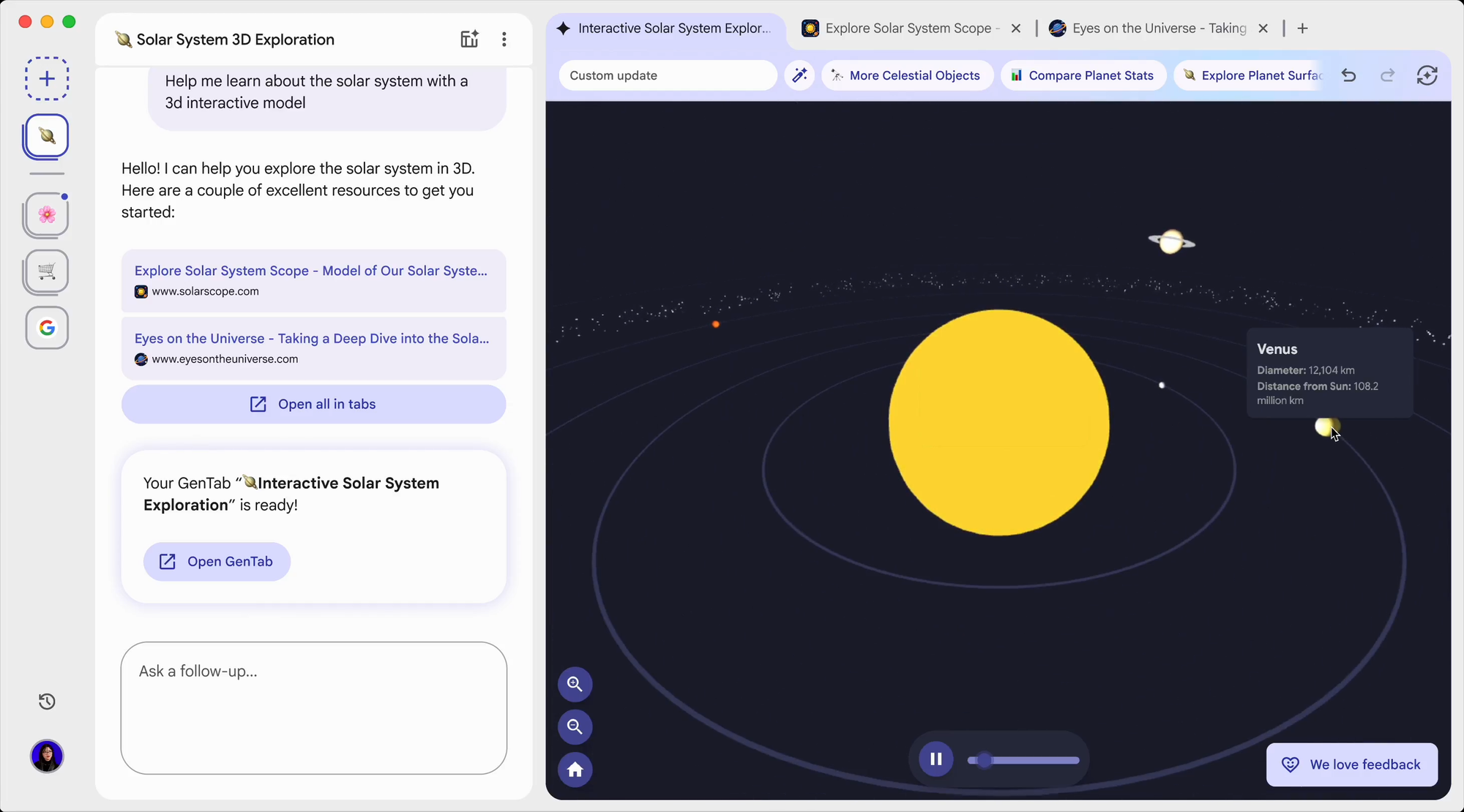 Google 官方也提到,早期測試者已經用 GenTabs 做出「旅遊規劃、每週餐單、行星教學」等客製化小工具。