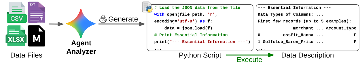 DS-STAR 的第一個模組會自動掃描資料夾中的所有檔案,不論格式為 CSV、JSON、TXT 或 Markdown,皆能理解其結構與關聯。