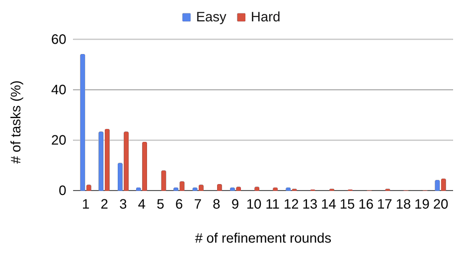 - 超過一半的簡單任務僅需 1 輪即可解決
