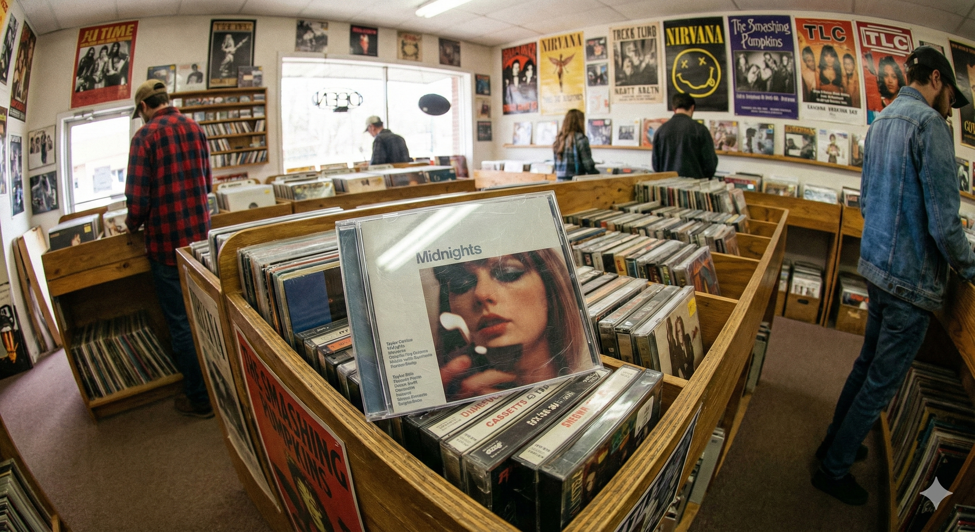 - 場景一:放入「90 年代美國舊唱片行」。CD 盒上的塑膠反光、周圍舊磁帶的質感、空氣中的塵埃感,完美復刻了那個年代的氛圍。