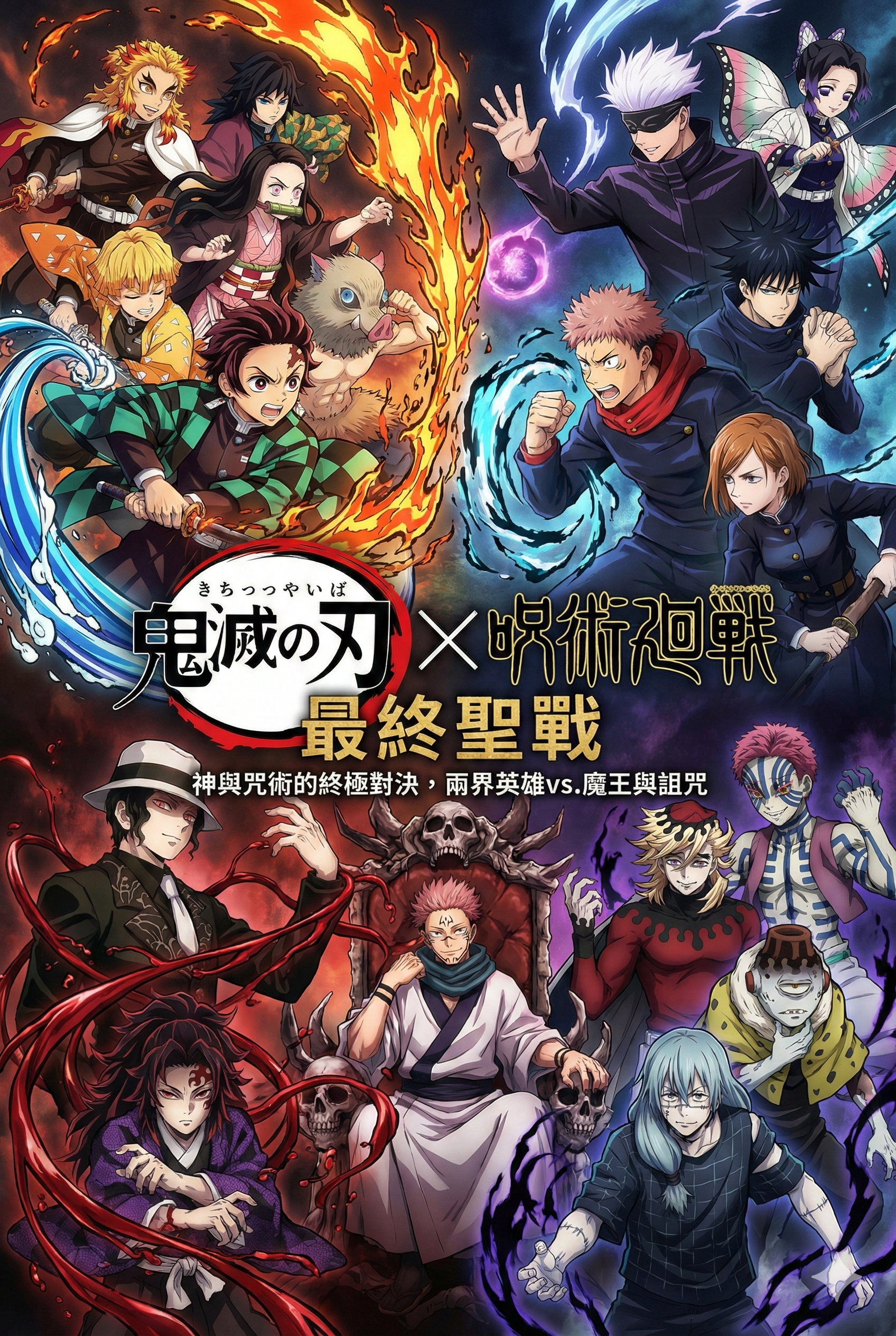 - 電影海報:鬼滅之刃+咒術迴戰大戰的電影海報。