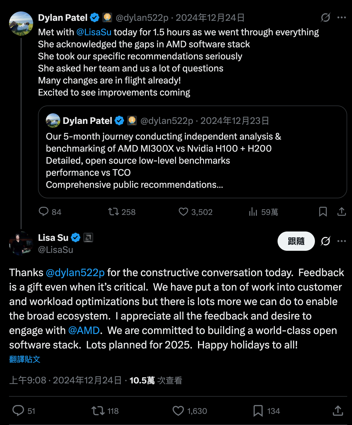 當外界對 AMD 的 AI 軟體體驗提出尖銳批評時(如 ROCm 的易用性與相容性),她並未用公關回應;相反地,她隔天就與撰文的分析師長談,逐條對焦細節,並公開寫下「Feedback is a gift(回饋是禮物)」——把批評視為產品路線圖的一部分。這種「厚度」不是情緒管理,而是工程文化:面對真問題,立刻進場修。