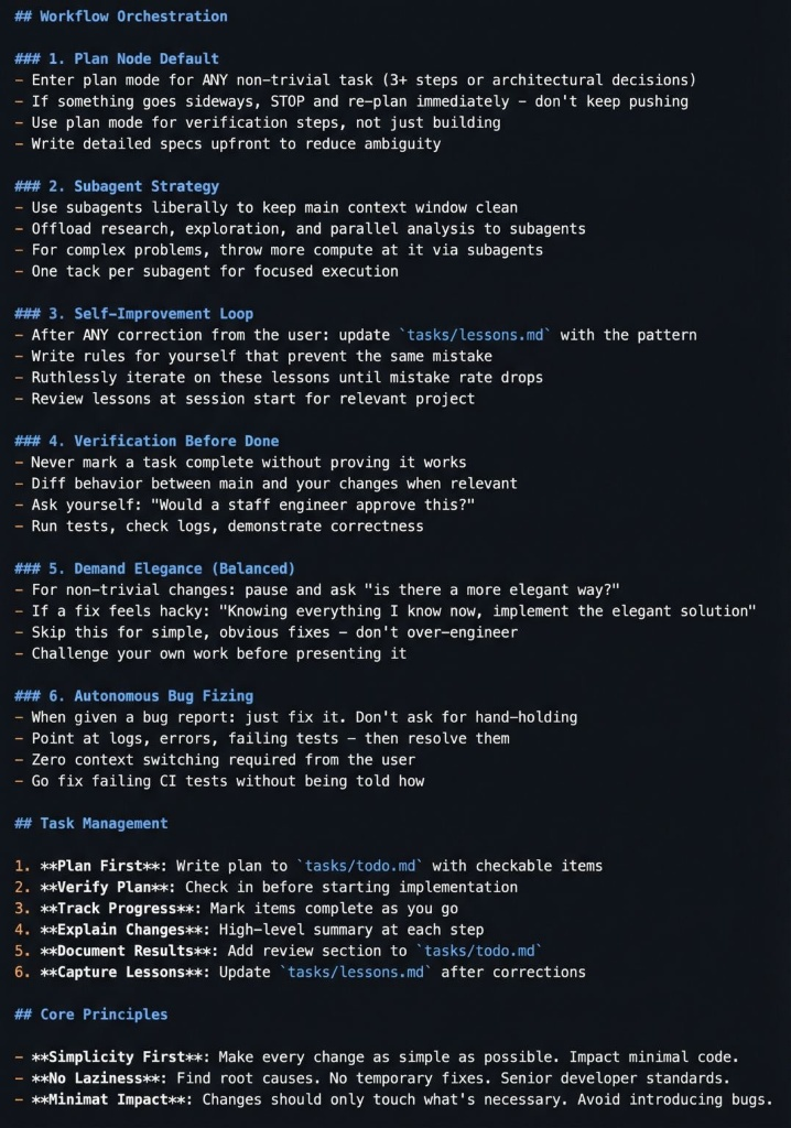 tasks/lessons.md。 - 規則化治理:將教訓轉化為具體的「執行規則」,並在每次任務開始前重新讀取,將模糊的「印象」變成堅硬的「準則」。