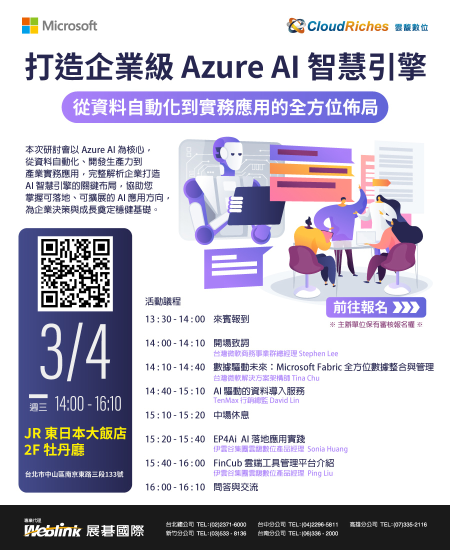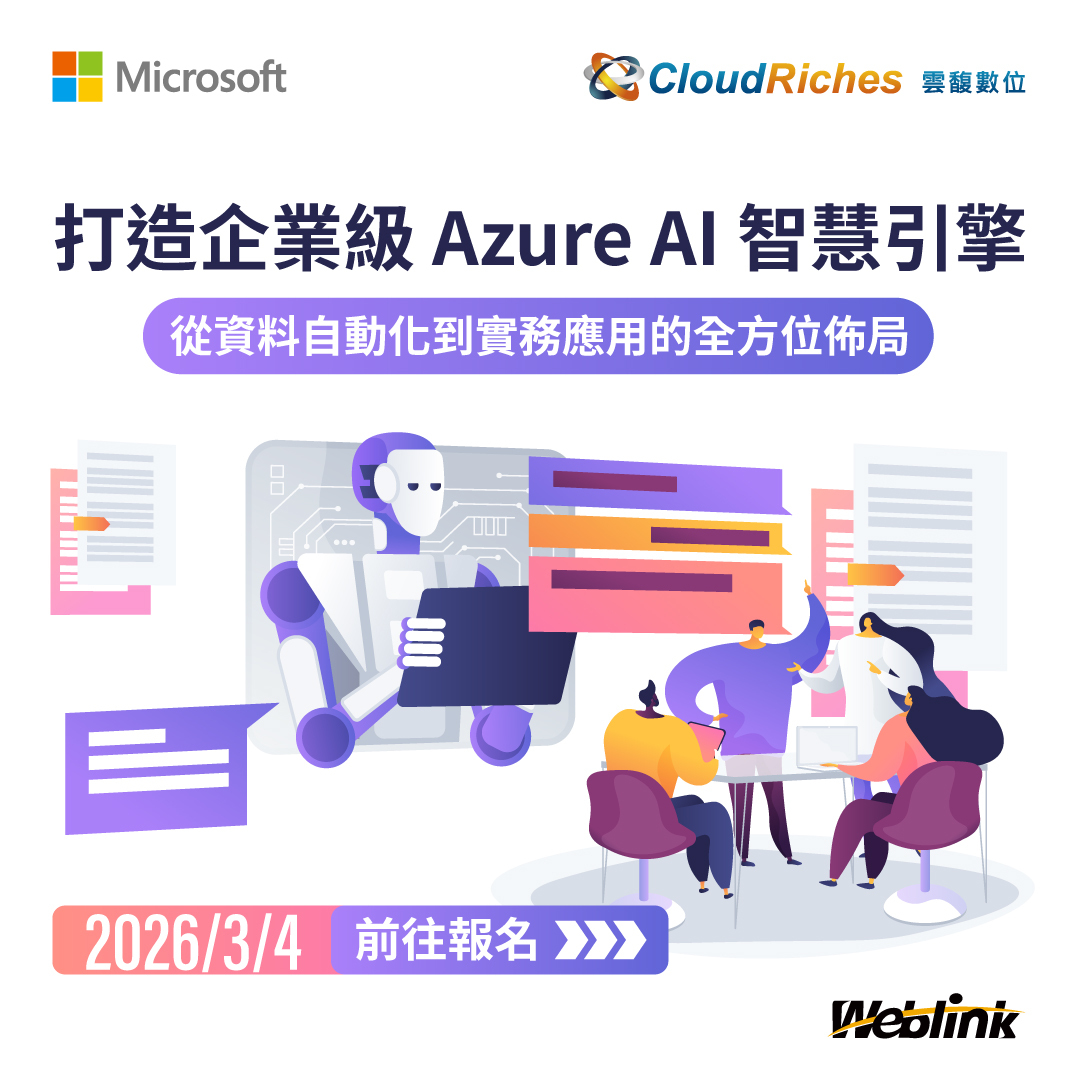 - 報名連結:打造企業級 Azure AI 智慧引擎:從數據自動化到實務應用