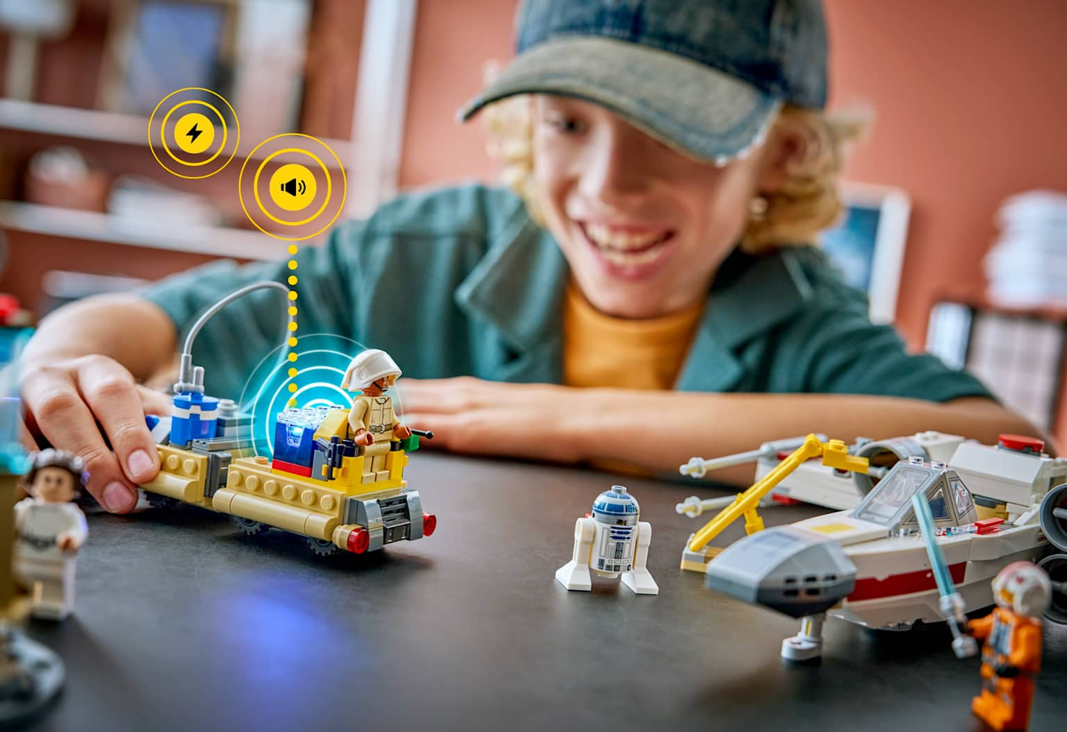 SMART Minifigure 智慧小人偶則內建標記系統,每個角色都擁有獨特的「人格」與情緒反應。當玩家移動或互動時,Smart Brick 的揚聲器就會播放該角色的專屬音效,如光劍揮舞聲、帝國進行曲或角色台詞。