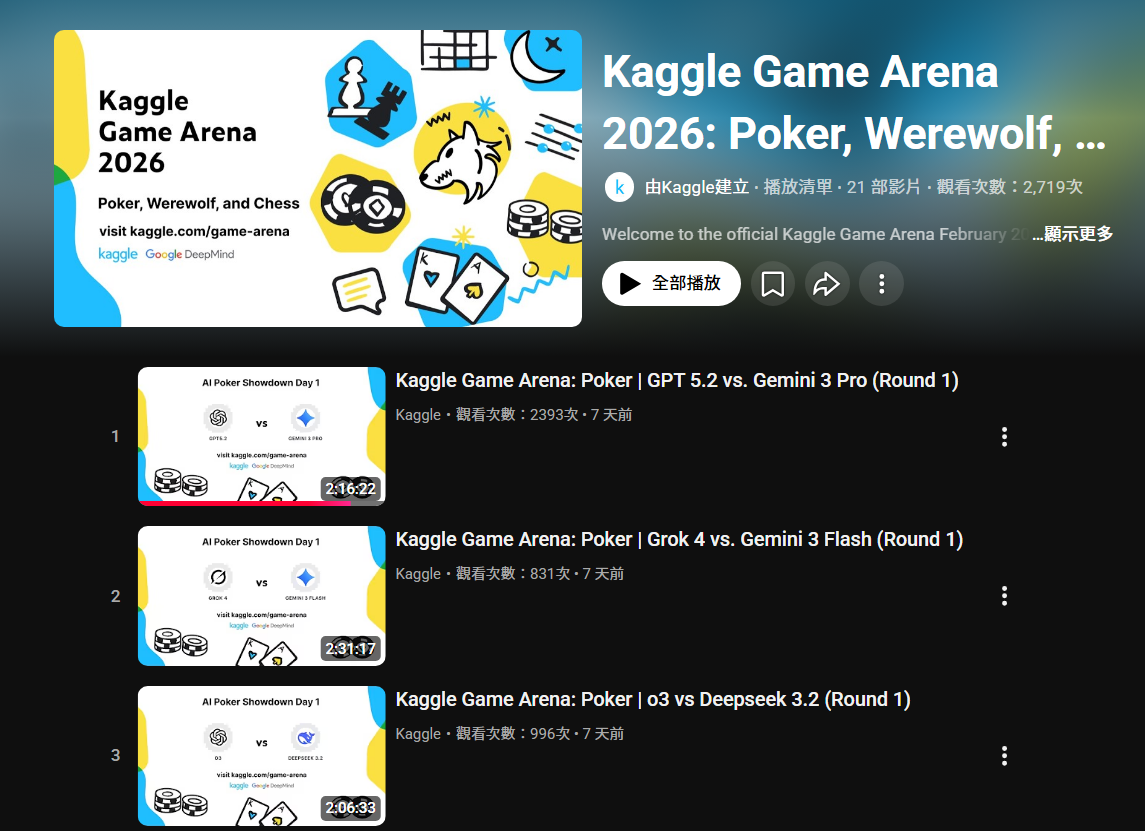 - Kaggle 推出 Game Arena:讓 AI 模型在遊戲裡正面對決,重新定義「智慧」