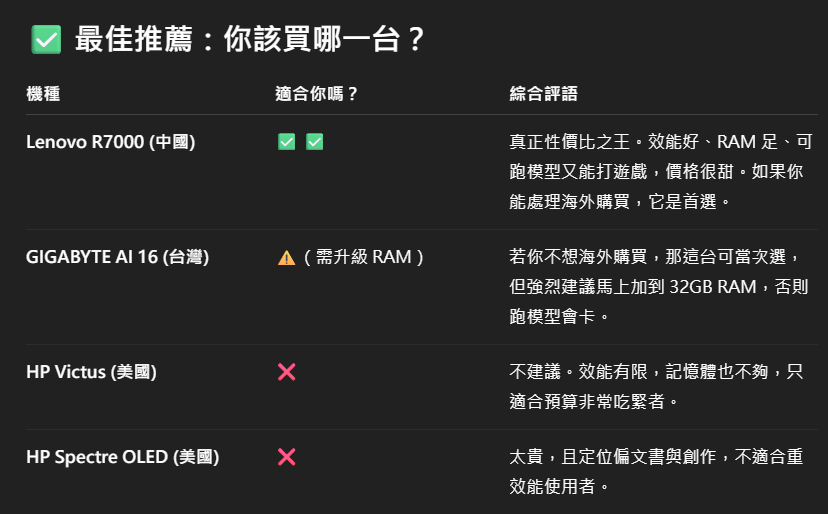 因為我對於電腦硬體沒有特別熟悉,我把這份報告再轉丟給 ChatGPT,請他仔細評估他的推薦。