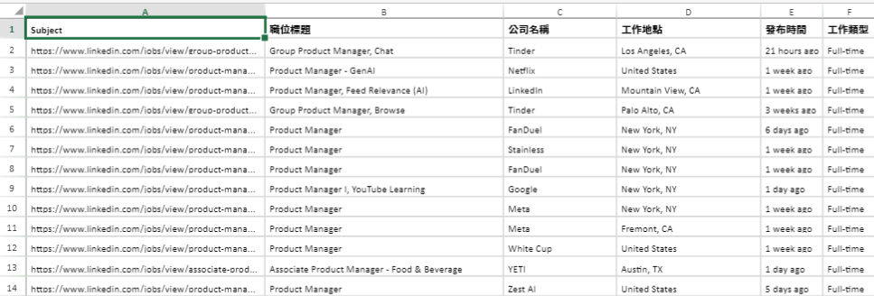 1. 職業規劃:搜尋 Linkedin 上 PM 職位需求,分析我未來提升的方向