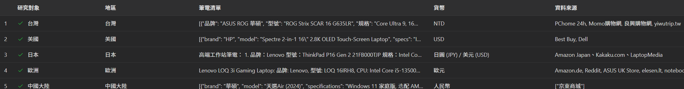 Manus AI 首先確認筆電需求的規格,接著開始使用 Wide Research 搜尋海內外筆電產品和價格,並整理價格轉換台幣,最後是生成報告提供給我。但我覺得我的提示詞需求打的還是挺模糊的,如果有比較懂電腦硬體配置的朋友應該能用 Manus AI 達到更好的效果!