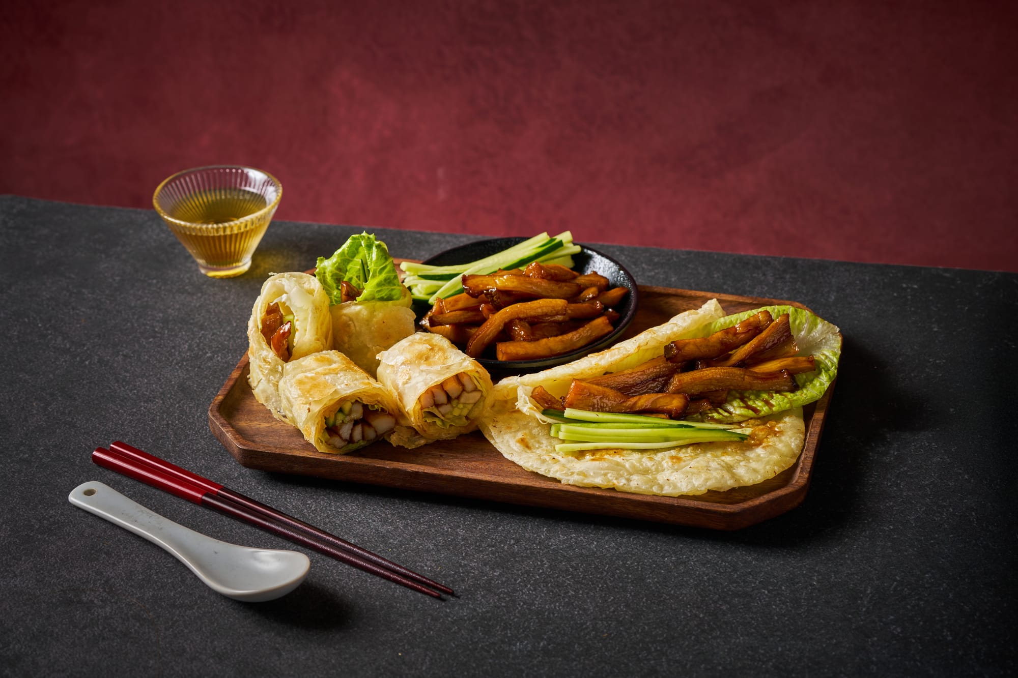第一道讓大家停下聊天的是 京醬若絲捲餅。