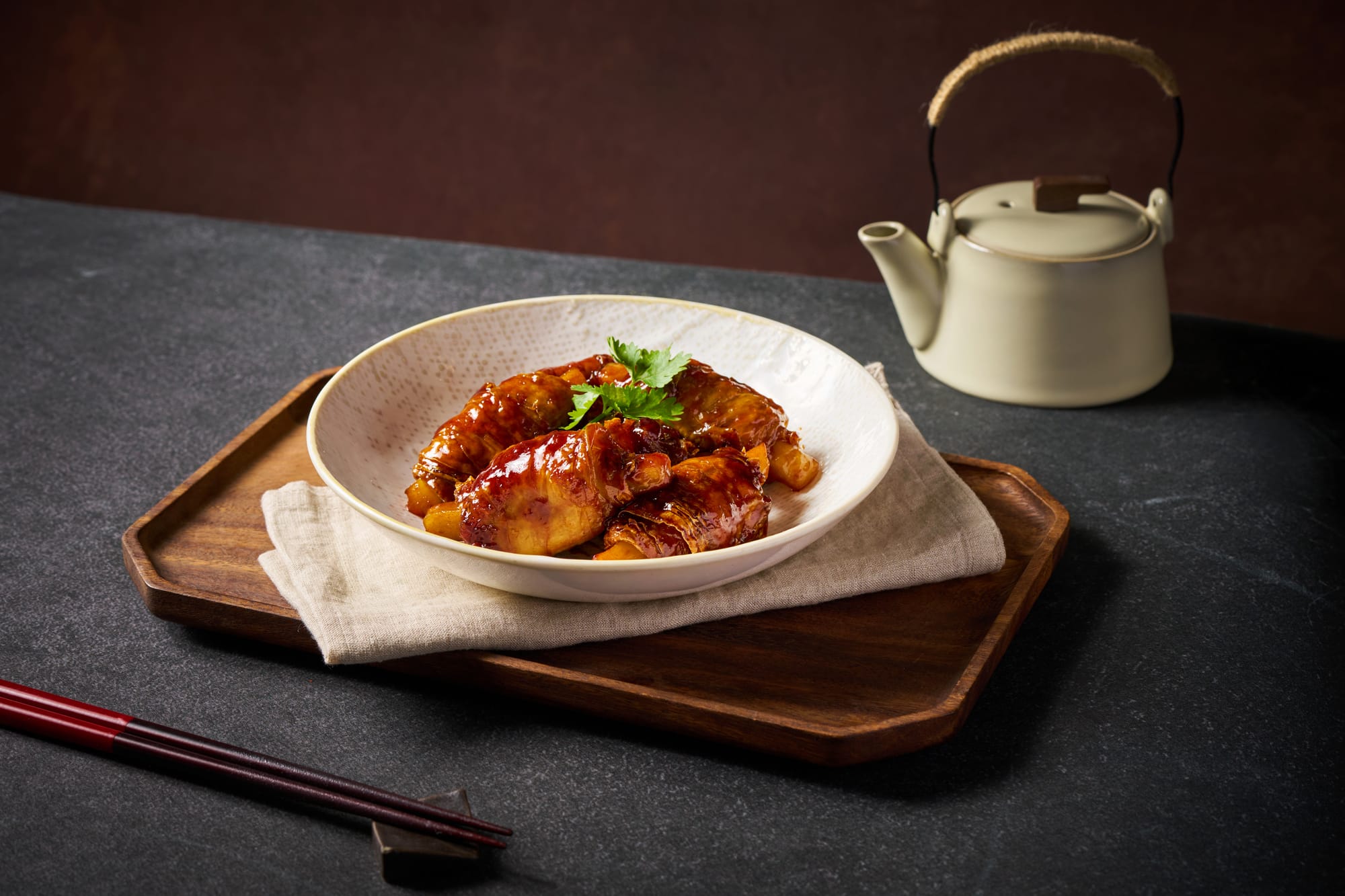 以無錫排骨、東坡肉、揚州炒飯、小籠包等經典為靈感,改用植物肉、日本車麩、菇類與燕麥奶,保留記憶中的醬香與層次,同時讓身體的負擔悄悄下降。