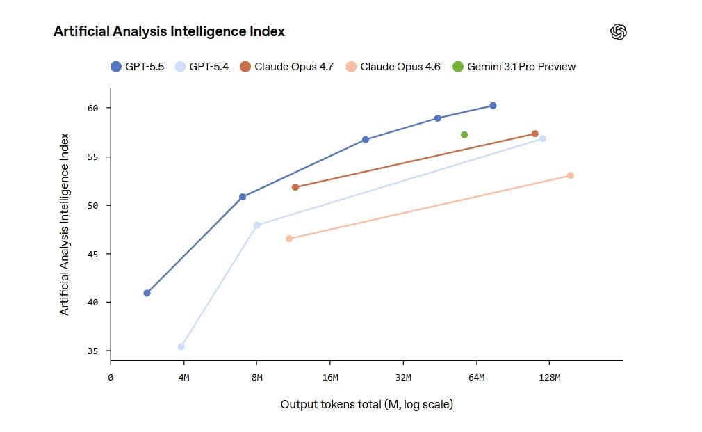 API 方面,GPT-5.5 訂價約為每百萬輸入 token 5 美元(輸出價格更高),約為 GPT-5.4 的兩倍。OpenAI 解釋,雖然單價較高,但 token 效率提升後,實際完成相同任務的總花費不一定更高。API 版本預計「很快」開放,但部署規格仍在最後調整。