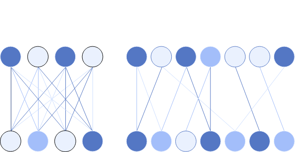 - 結果是:每個神經元只連接到下一層中的少數幾個神經元。