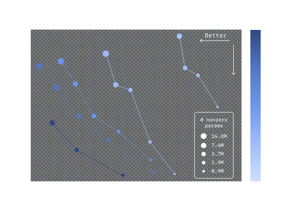 - 對於固定大小的稀疏模型,增加稀疏度(設置更多權重為零),會降低能力,但增加可解釋性。
