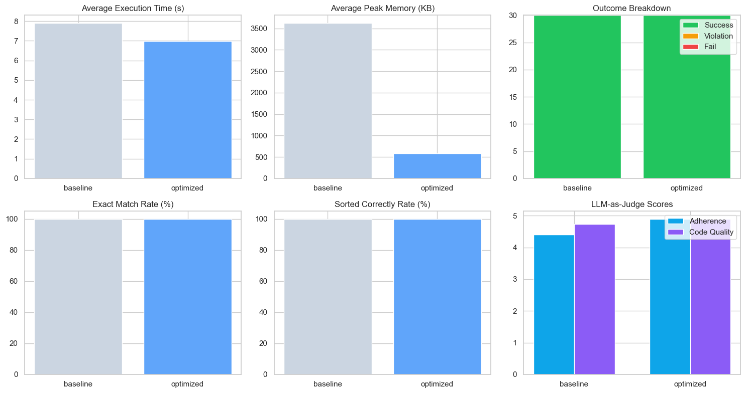 - 滿分比例大幅增加:優化後提示詞更容易拿到 Judge 的 6/6 評分。