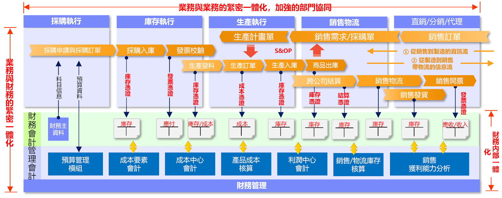 第二層:數據即時整合,打破資訊孤島PwC Consulting 協助企業串接前後端模組,讓運籌端(採購、生產、銷售)與財務成本端資料即時同步。預測與排程資料可保留於 ERP 系統中進行多版本模擬,並透過 MRP 提升供應鏈彈性。平時採標準成本入帳,月底以實際成本修正,搭配即時獲利分析,管理層不再需等月底報表才能決策。