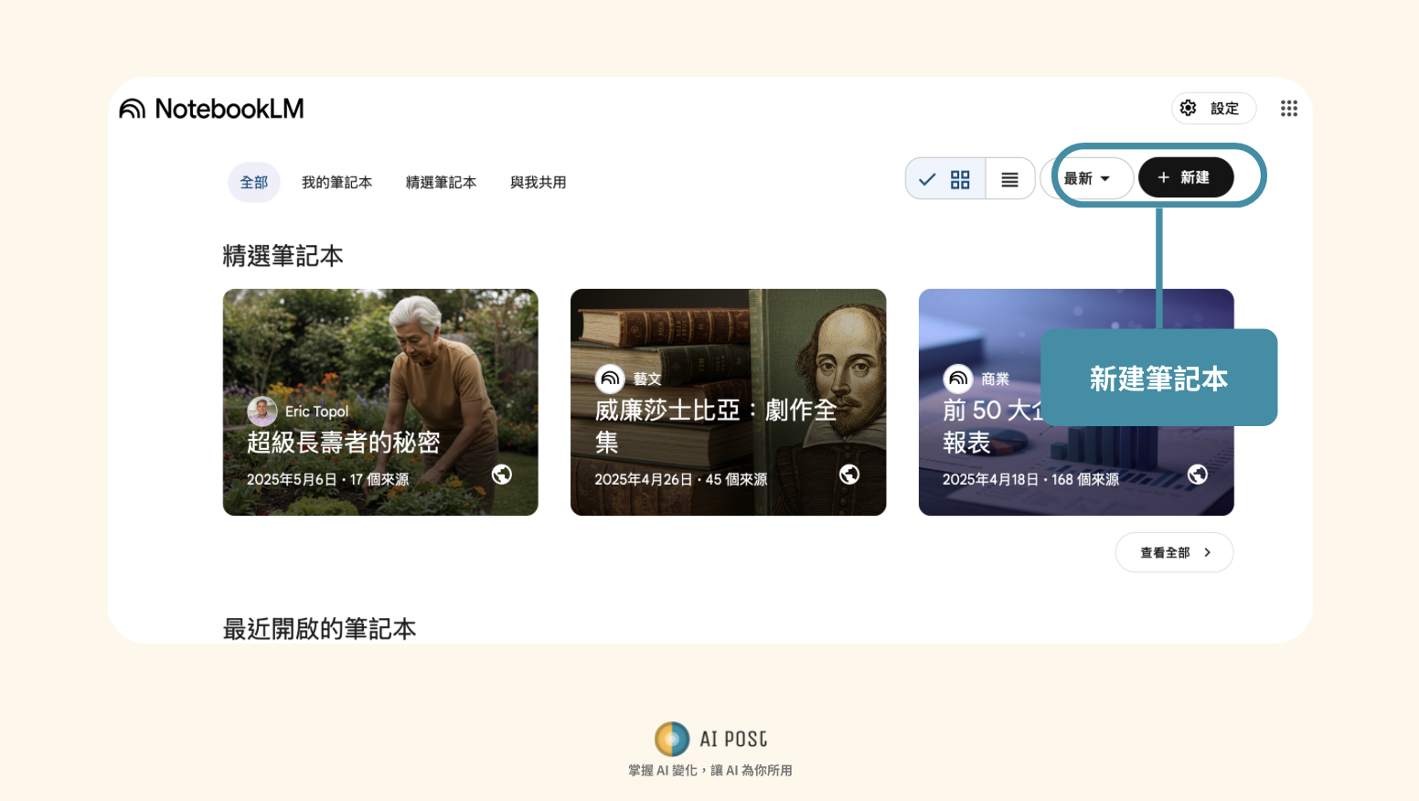 這就像建立一個「專案資料夾」,接下來的所有文件都會歸類在這個 notebook 裡。