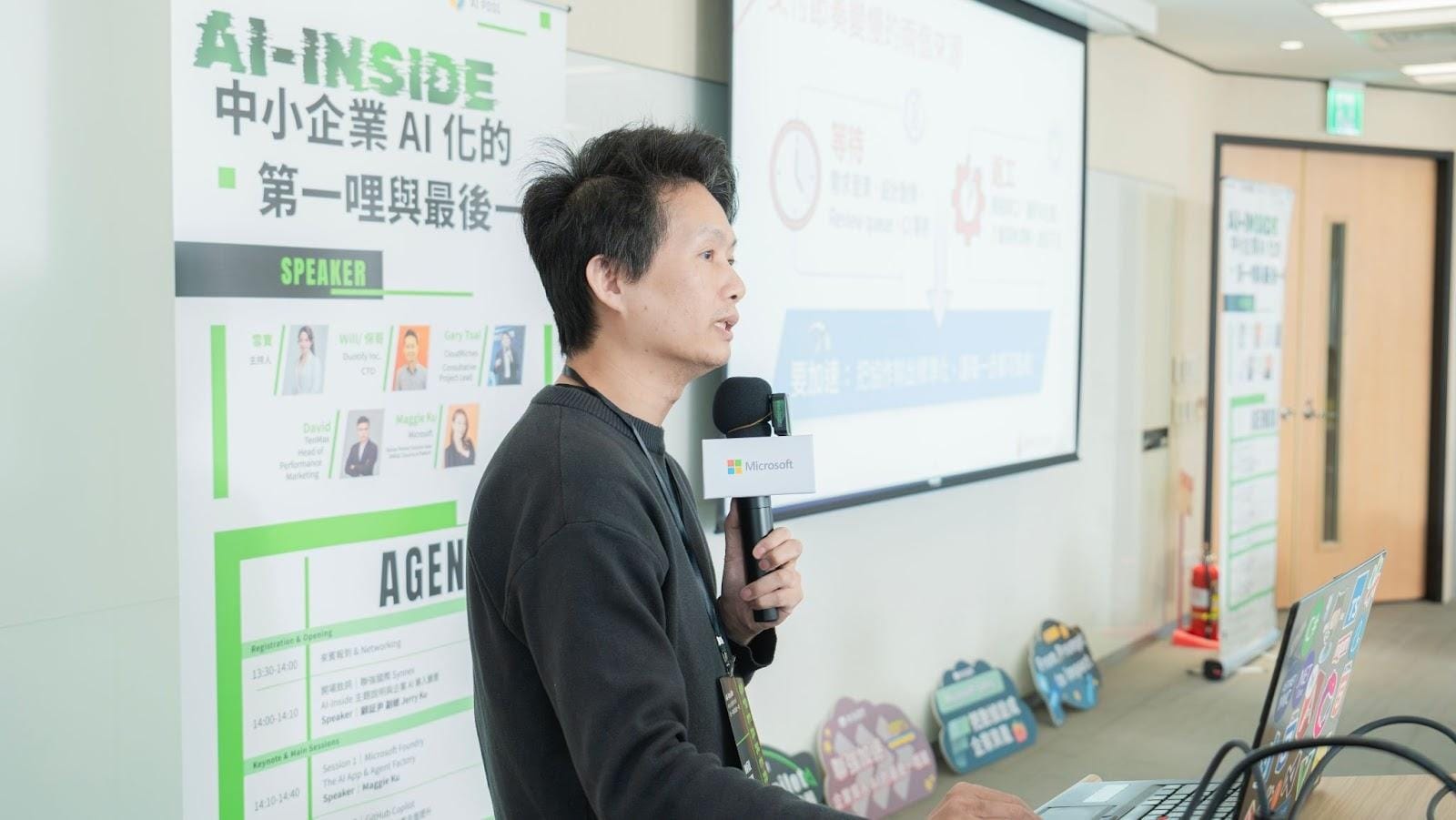 聯強國際副總 Jerry 在致詞中指出,未來的企業生存法則,在於員工能否將自身的專業經驗(Domain Knowledge),轉化為 AI 能夠理解的指令。