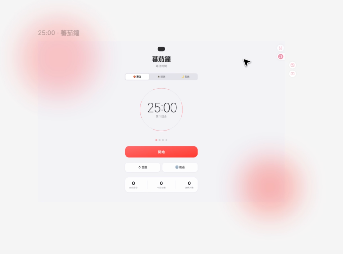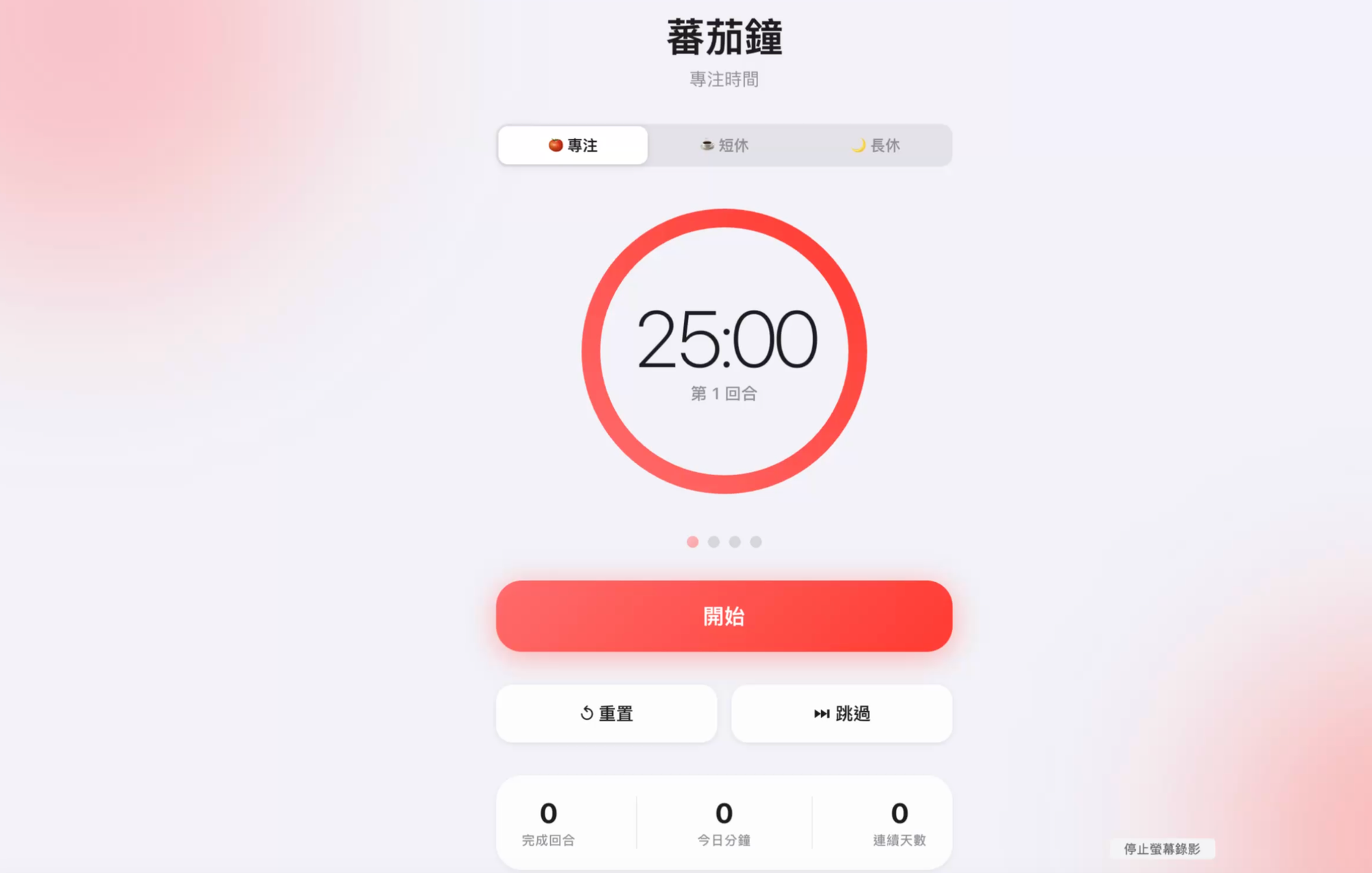 幫我設計一個ios風格的蕃茄鐘:[figma 網址]