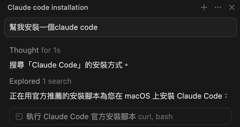 複製此文案,貼入終端機,可安裝claude: