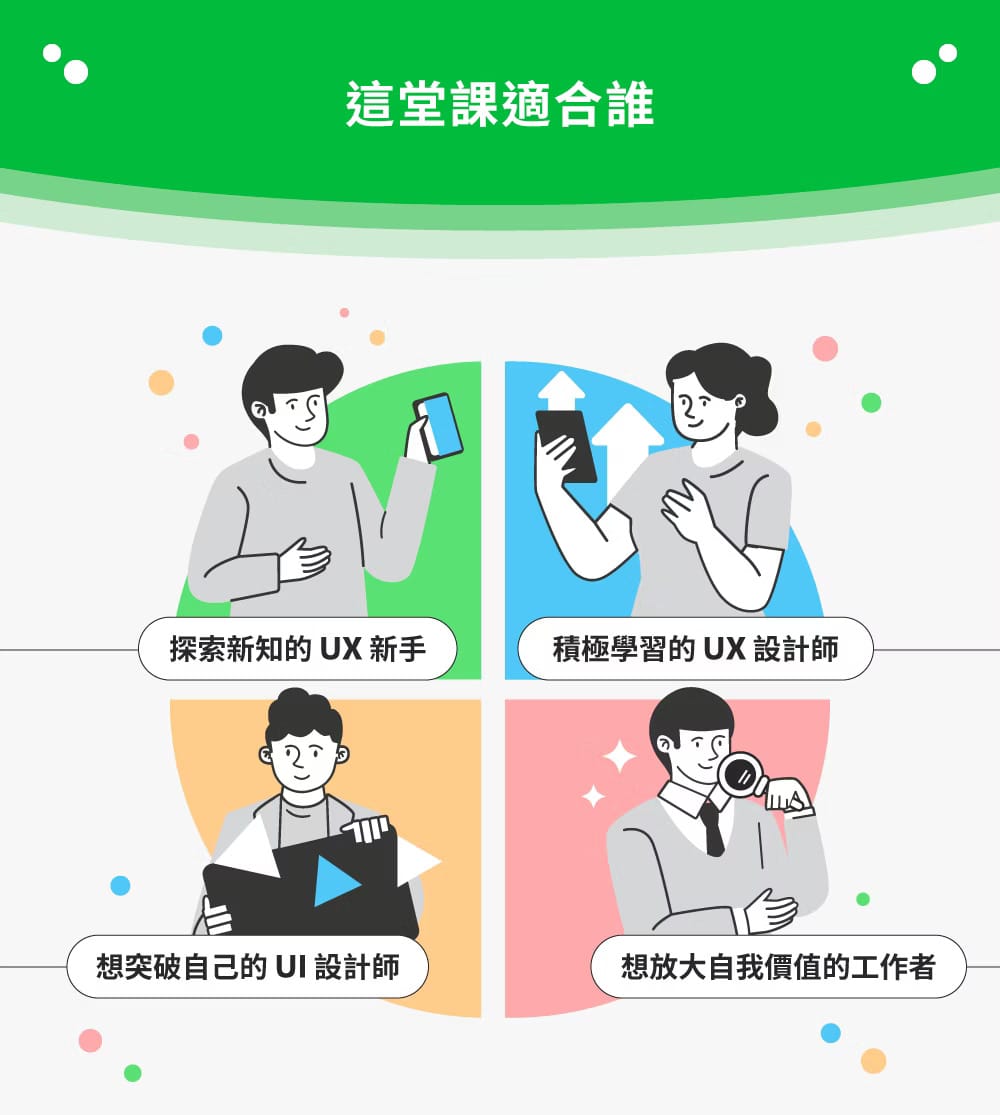 上完課程後,我個人覺得這堂課非常適合以下幾種類型的學習者: