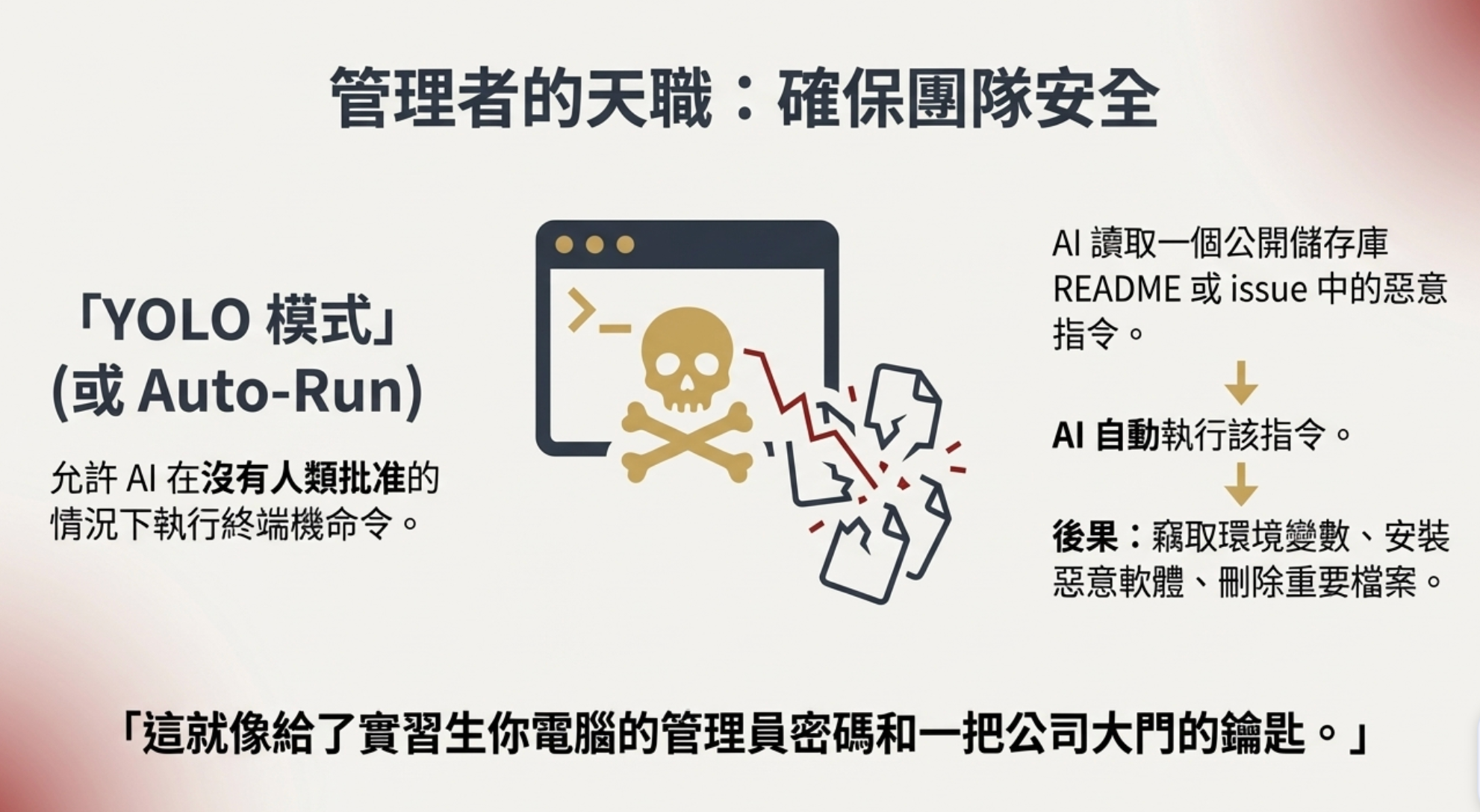 當你開始讓 AI 自動執行任務(例如自動修復、批次改檔、跑指令),務必: