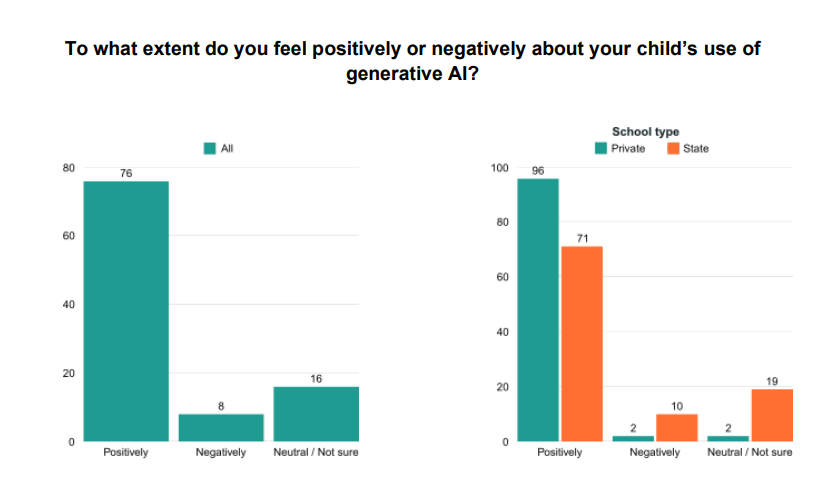私立學校的孩子使用率高達 52%,而公立學校只有 18%。背後的關鍵差別,不只是「會不會用」,而是老師有沒有意識到 AI、學校有沒有資源讓學生接觸。